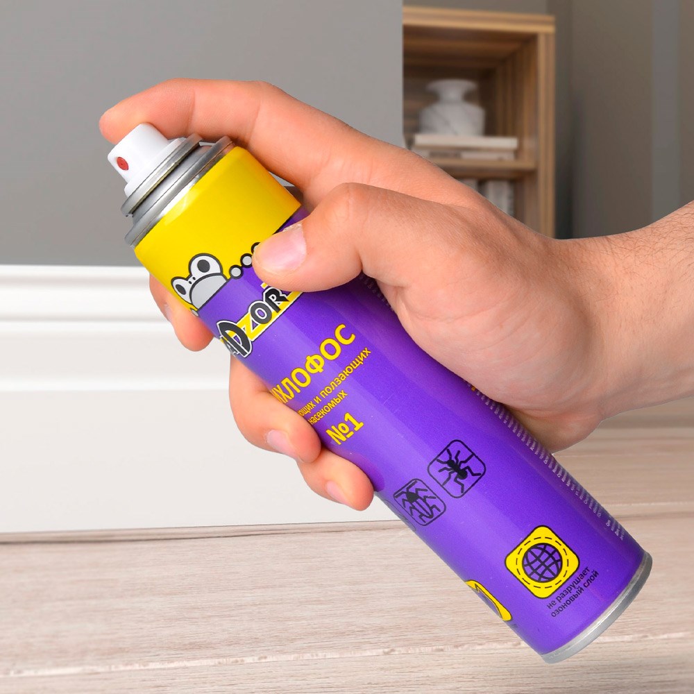 - Направьте струю аэрозоля с расстояния 15-20 см в места скопления, обитания или передвижения насекомых.