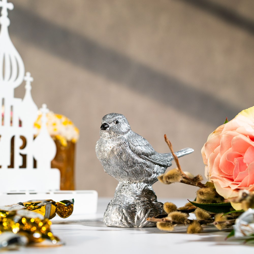 Фигура декоративная Воробей полистоун серебро высота 11см U08955-S