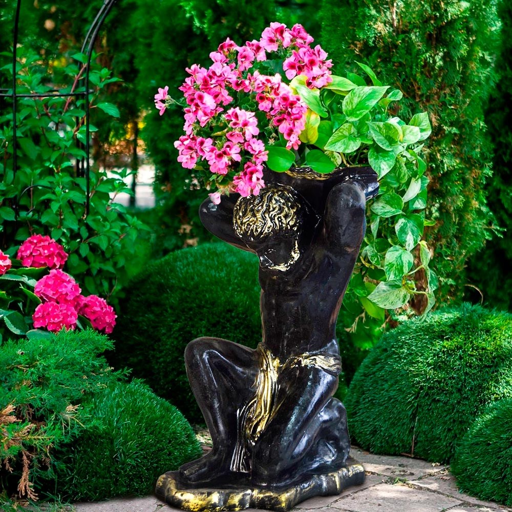 Фигура Титан чёрно-золотая с подставкой под цветок высота 70см F03022-BG