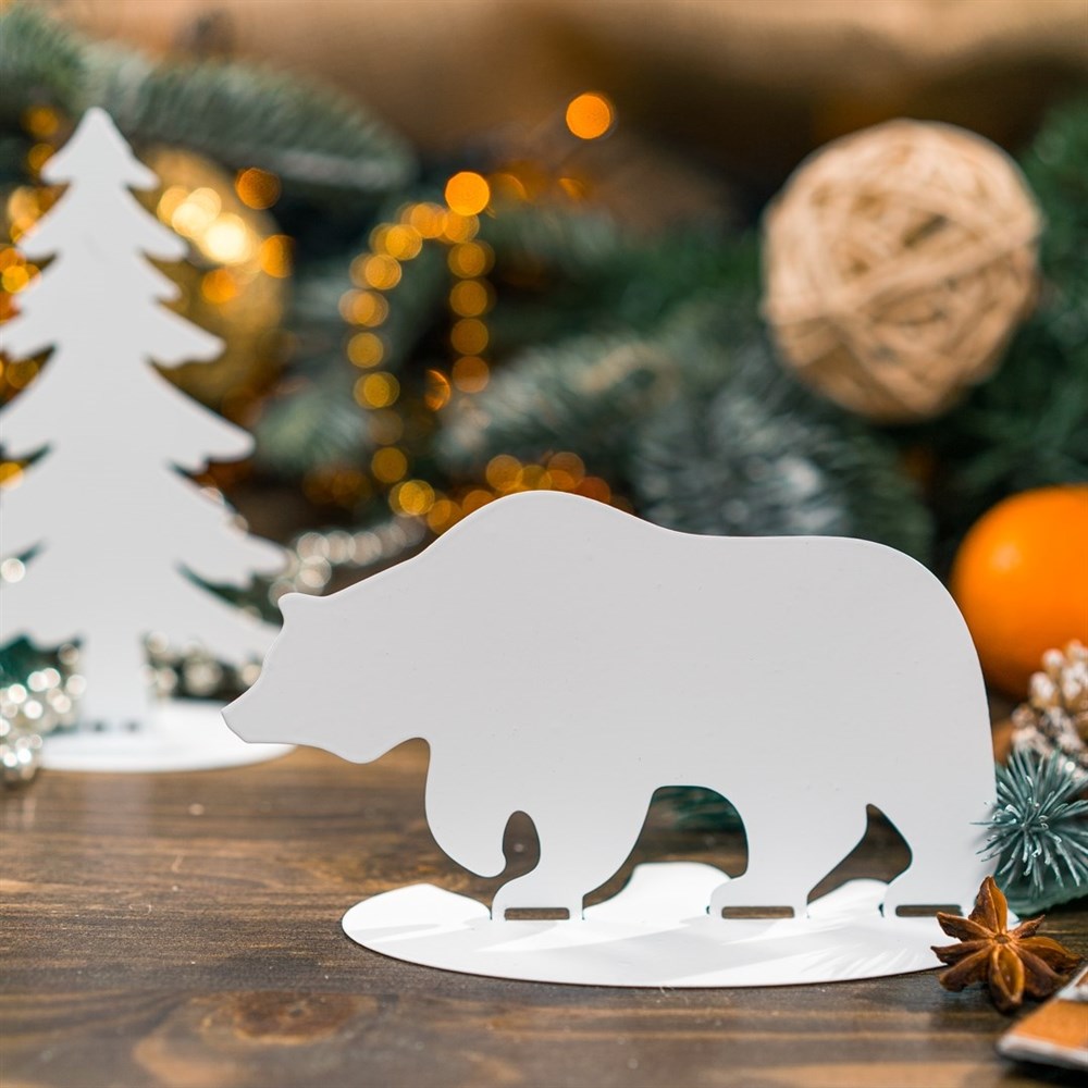 Фигурка настольная Медведь новогодняя металл белый 700-001W