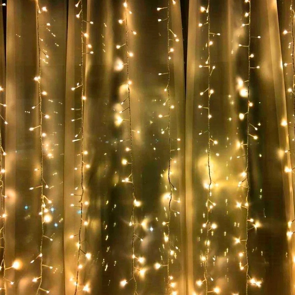 На концах шины располагаются коннекторы, которые предназначены для последовательного соединения нескольких гирлянд в большой занавес для украшения больших площадей или объемных объектов. Благодаря использованию светодиодов гирлянда отличается превосходной яркостью и низким энергопотреблением. Гирлянда имеет теплый белый цвет свечения и облегченную шину без Т-коннекторов.