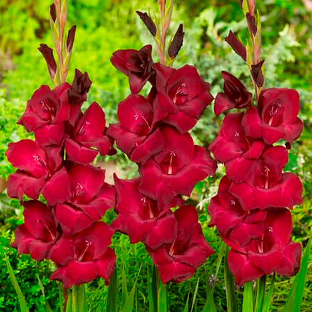 В упаковке 3 луковицы. Гладиолус крупноцветковый Эт Найт является настоящим украшением для любого сада или цветника. Его потрясающая красота, изящность соцветий и необычный цвет делают это растение идеальным выбором для тех, кто ценит красоту и элегантность в природе. Растение поднимается в высоту до 110-120 см. Цветки, крупные имеют потрясающий оттенок красно-темно-пурпурного цвета, который привлекает внимание. Диаметр цветка достигает 8 - 10 см, что делает его цветение по-настоящему величественным. Сорт идеально подходит для срезки. Прекрасно смотрится в цветниках, горшках и на клумбах.