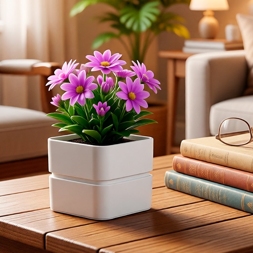 - Современный дизайн. Глубокий матовый белый оттенок выглядит дорого и нейтрально. Он оттенит яркую зелень, цветы или серебристый налёт суккулентов, не отвлекая на себя внимание.