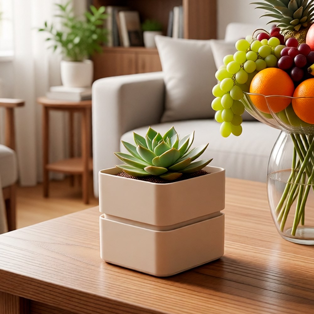 - Дренажное отверстие. В комплекте есть заглушка, позволяющая использовать кашпо как горшок с дренажем или как кашпо-укрытие для стандартного пластикового горшочка.