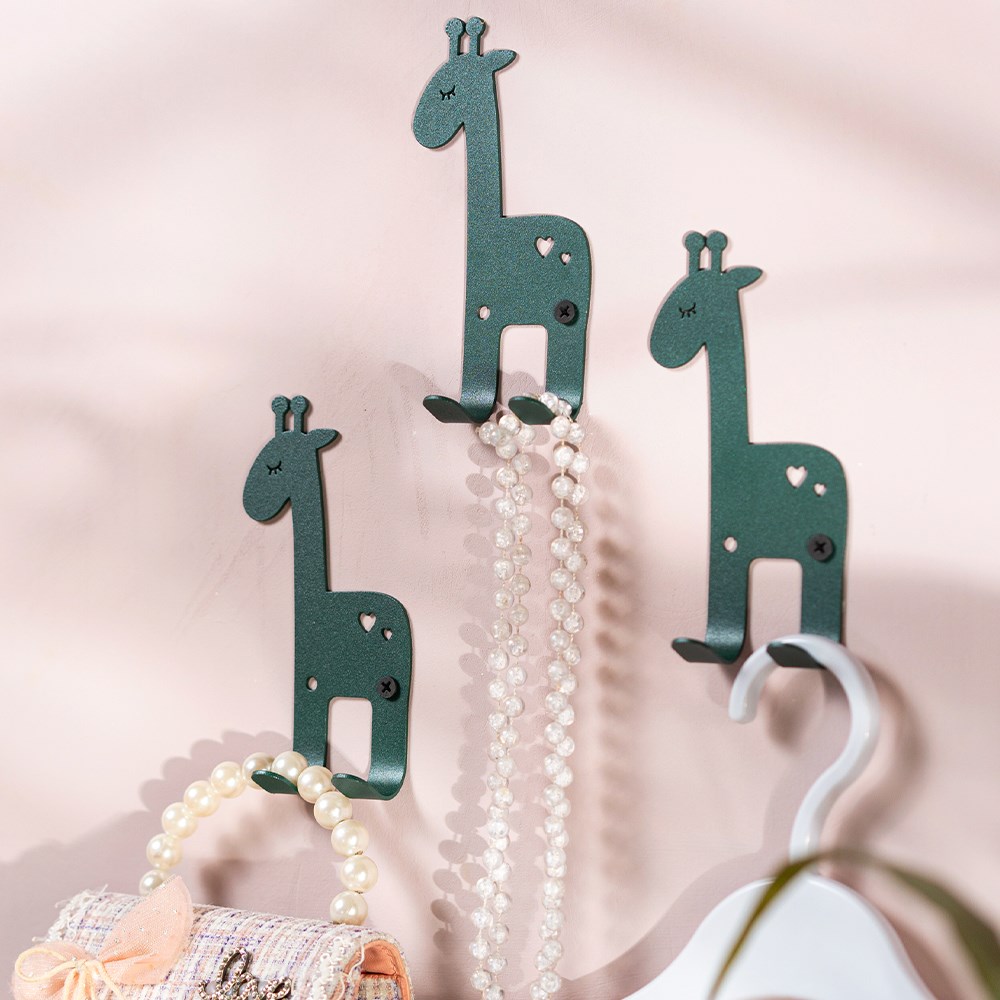 Крючок двойной настенный для детских вещей Жираф зелёного цвета.
