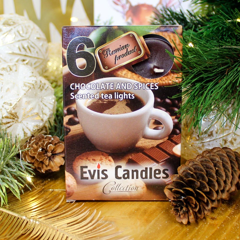 Набор чайных свечей 6 штук цвета какао. Они изготовлены из парафина с ароматом шоколада и пряностей. Чайные свечи - это маленькие свечи, которые используются для украшения и создания атмосферы при чаепитии или романтическом ужине. Чайные свечи имеют небольшое пламя, которое горит около часа, чем создают приятное и мягкое освещение. Некоторые люди также используют чайные свечи для медитаций, которые способствуют расслаблению и созданию уютной атмосферы.