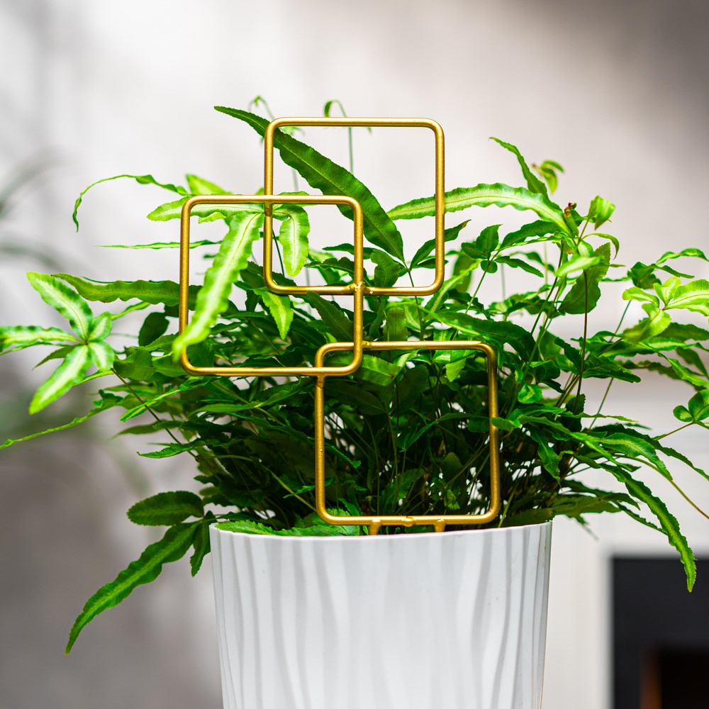 Металлическая опора 57-935G для комнатных растений в элегантном золотом цвете – это не только функциональный аксессуар, но и стильный элемент декора, который подчеркнёт красоту ваших зелёных питомцев. Изготовленная из прочного металла, эта опора обеспечивает надёжную поддержку для растений, позволяя им расти вертикально и развиваться здоровыми. Золотой оттенок придаёт опоре изысканность и роскошь, позволяя ей идеально вписаться в любой интерьер, будь то современный, классический или минималистский стиль. Эта опора отлично подойдёт как для крупных зелёных растений, так и для более маленьких цветов, придавая каждому из них особый шик. Её лаконичный и элегантный дизайн не отвлекает внимание от самого растения, а наоборот, подчёркивает его естественную красоту. Опора помогает предотвратить повреждения стеблей и обеспечивает правильное распределение солнечного света и питательных веществ.