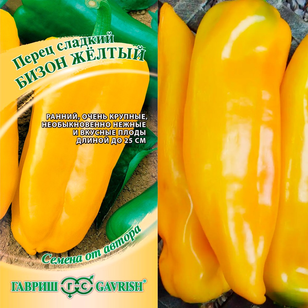 Раннеспелый (93-104 дня от всходов до технической спелости) сорт суперурожайного крупноплодного перца. Рекомендуется для выращивания в открытом грунте (южные регионы) и теплицах. Растение мощное, высотой 90-100 см. Куст полностью усыпан удлиненно-конусовидными глянцевыми плодами, длина которых действительно впечатляет (отдельные до 25 см!). Масса 200 г. Стенки сочные, сладкие, толщиной 4-5 мм, остаются необыкновенно нежными как у незрелых зеленых плодов, так и у зрелых ярко-желтых. Сорт очень хорош для свежих салатов, жарки, тушения и фарширования. Продолжительное плодоношение обеспечит регулярный сбор плодов вплоть до поздней осени. Урожайность до 10 кг/м?. Посев на рассаду — в конце февраля. Пикировка — в фазе семядолей. Высадка в грунт — в конце мая. Формировка: удаление всех боковых побегов и листьев до первой развилки. Схема посадки: 40x80 см. Взрослым растениям, возможно, потребуется подвязка.