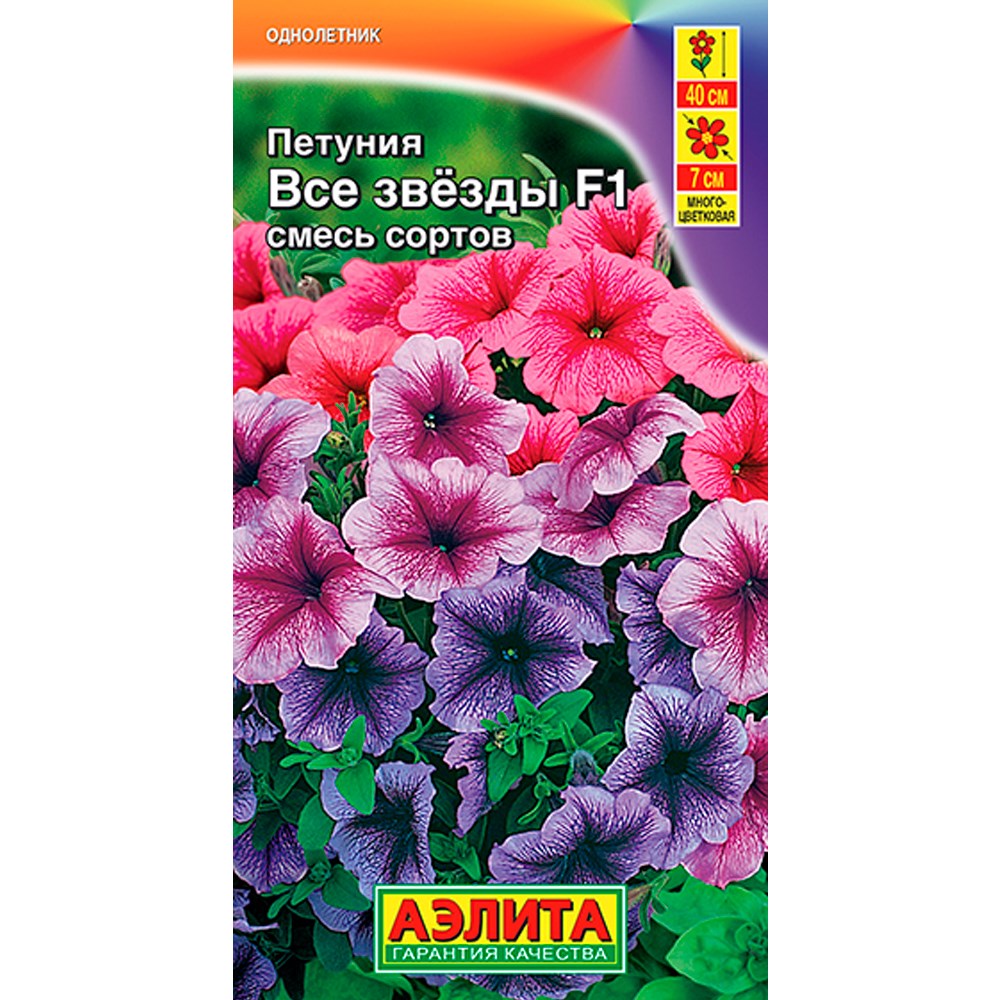 Яркая, впечатляющая смесь многоцветковой петунии с аккуратными полусферическими кустами высотой 25-40 см. Сохраняет форму весь сезон, не разваливается и не оголяется в центре. Цветки Ø 6-7 см, с плотной текстурой венчика. Устойчивы к дождям, ветру и жаре. Смесь прекрасно подходит для цветников разного типа, садовых контейнеров и балконных ящиков.