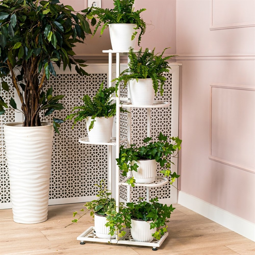 Подставка напольная для цветов на 6 горшков белая металл высота 98см 401-032W