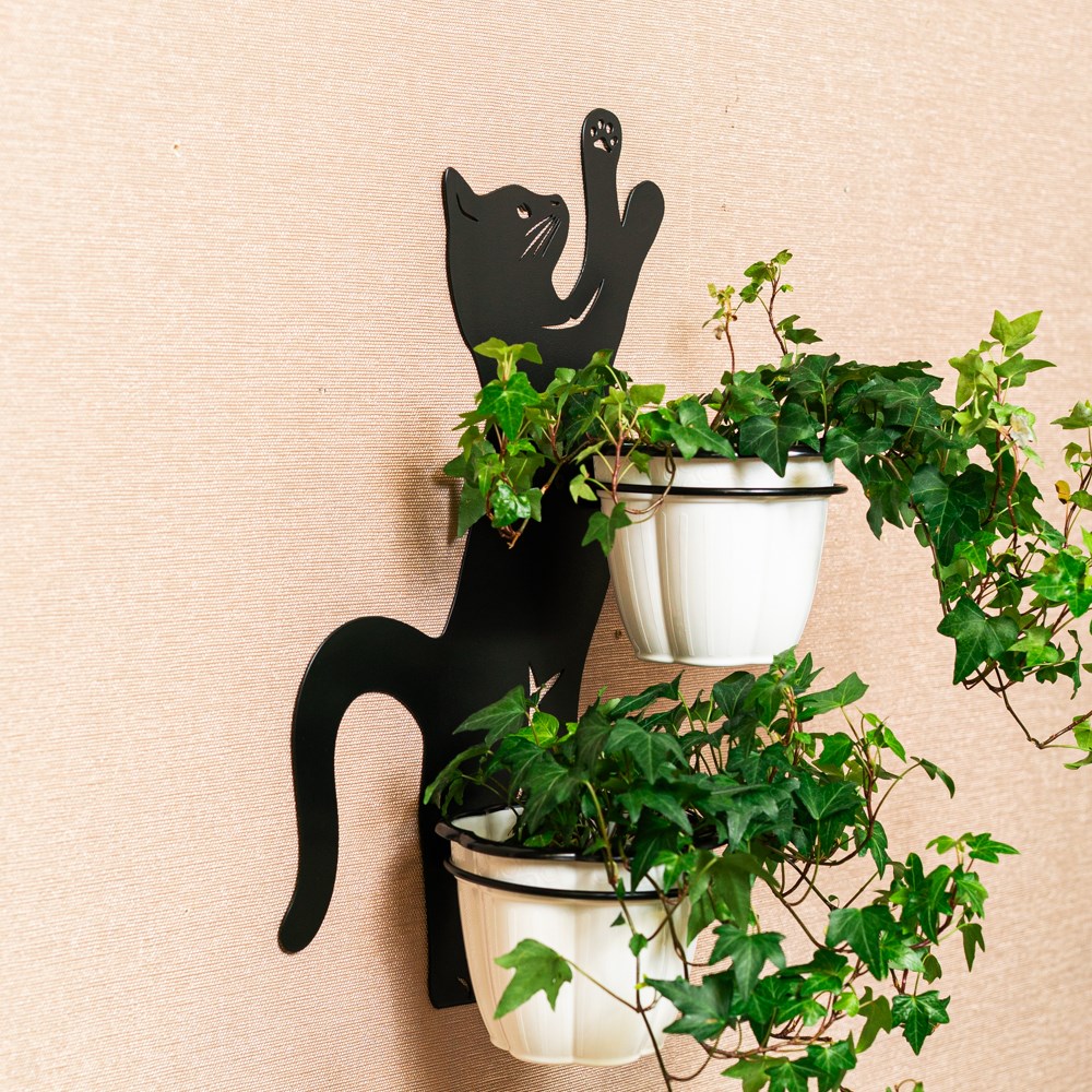 Превратите стену в уютный зелёный уголок с помощью очаровательной подставки в виде кота! Эта металлическая цветочница 150-203B — не просто функциональный аксессуар, а настоящее украшение для вашего интерьера.