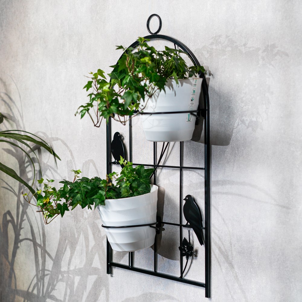 Настенная подставка Птицы 15-119B предназначена для размещения растений и цветов. Прочная и надёжная конструкция рассчитана для размещения двух цветочных горшков. Диаметр корзины: 12см. Материал изготовления: металл. Настенная подставка для цветов монтируется на стену, что позволяет сэкономить место на полке или столе. Это особенно полезно, если у вас ограниченное пространство или вы хотите создать уникальную композицию из растений на вертикальной поверхности. Кованая цветочница может добавить современный и элегантный вид в ваш интерьер - имеет стильный дизайн и отделку, которые сочетаются с вашим декором. Металлические подставки прочны и стабильны, что обеспечивает надёжную поддержку для ваших цветов. Настенные полки для цветов помогают повысить воздухообмен в комнате, так как растения находятся на разных уровнях и могут легко получать доступ к свету и воздуху. Это может быть особенно полезно для растений, которым требуется хорошая циркуляция воздуха. Настенная цветочница позволяет разместить растения на уровне глаз, что упрощает уход за ними. Вы можете легко поливать и обслуживать растения, не наклоняясь или пригибаясь. В целом, настенные металлические подставки для цветов — это стильное и практичное решение для создания уникального интерьера и экономии пространства.