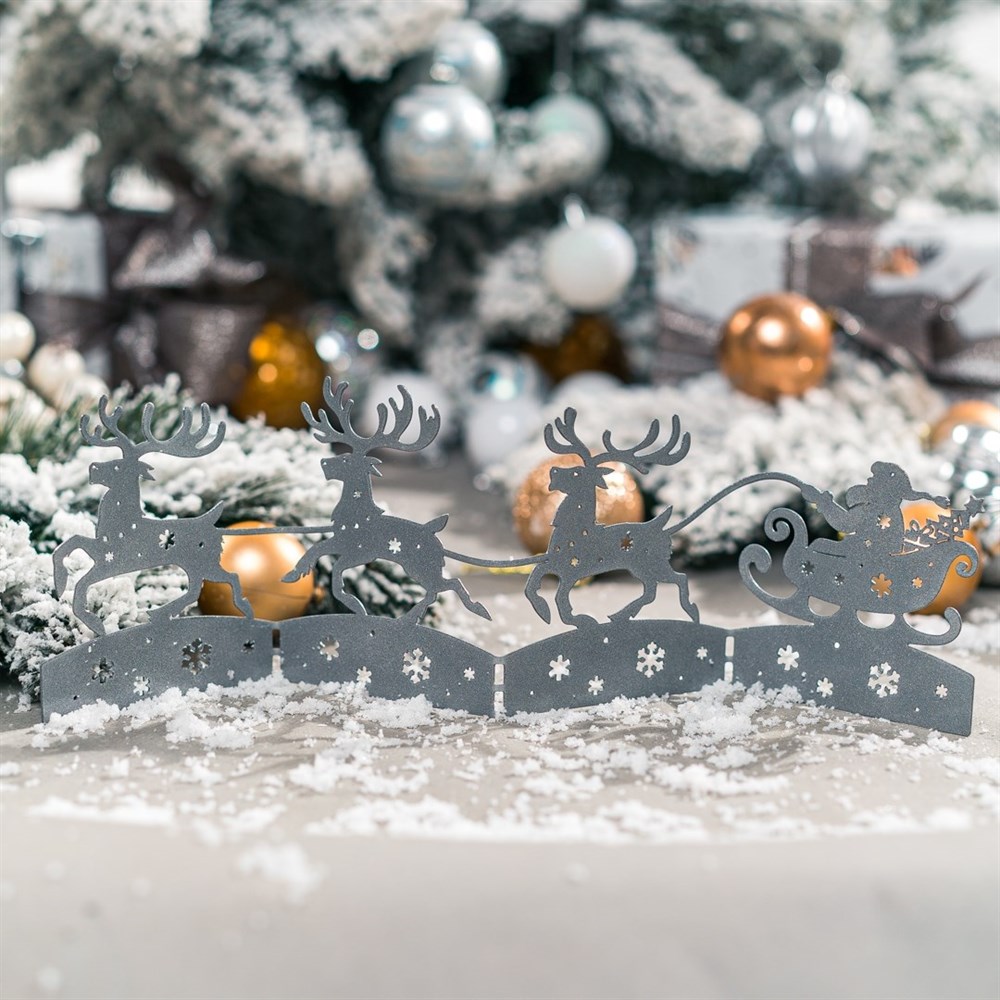 - Создаёт атмосферу. Мгновенно превращает стол в новогоднюю сказку. Детализированный силуэт Деда Мороза в упряжке будет отбрасывать красивые тени при свечах или гирляндах, делая ваш праздник по-настоящему волшебным.