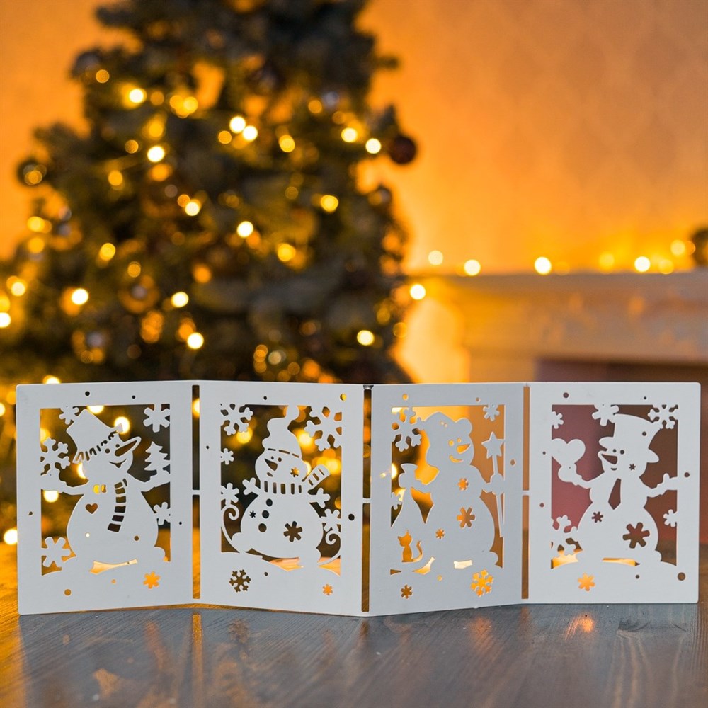 Ширма декоративная Открытки снеговика новогодняя белая металл длина 48см 200-053W