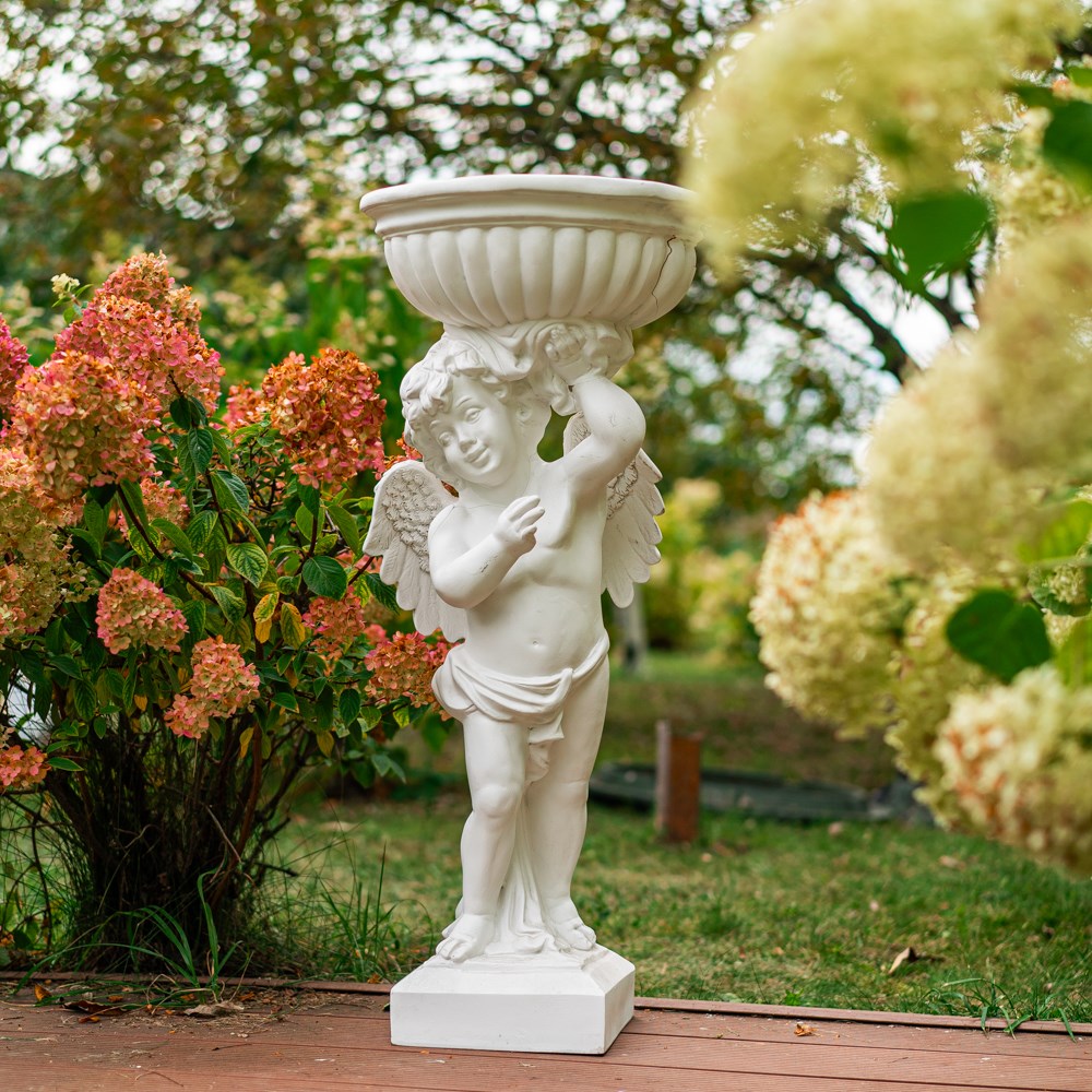 Фигура для интерьера Ангел с вазой подходит для украшения гостиной, холла или спальни. Изготовлена из полистоуна.