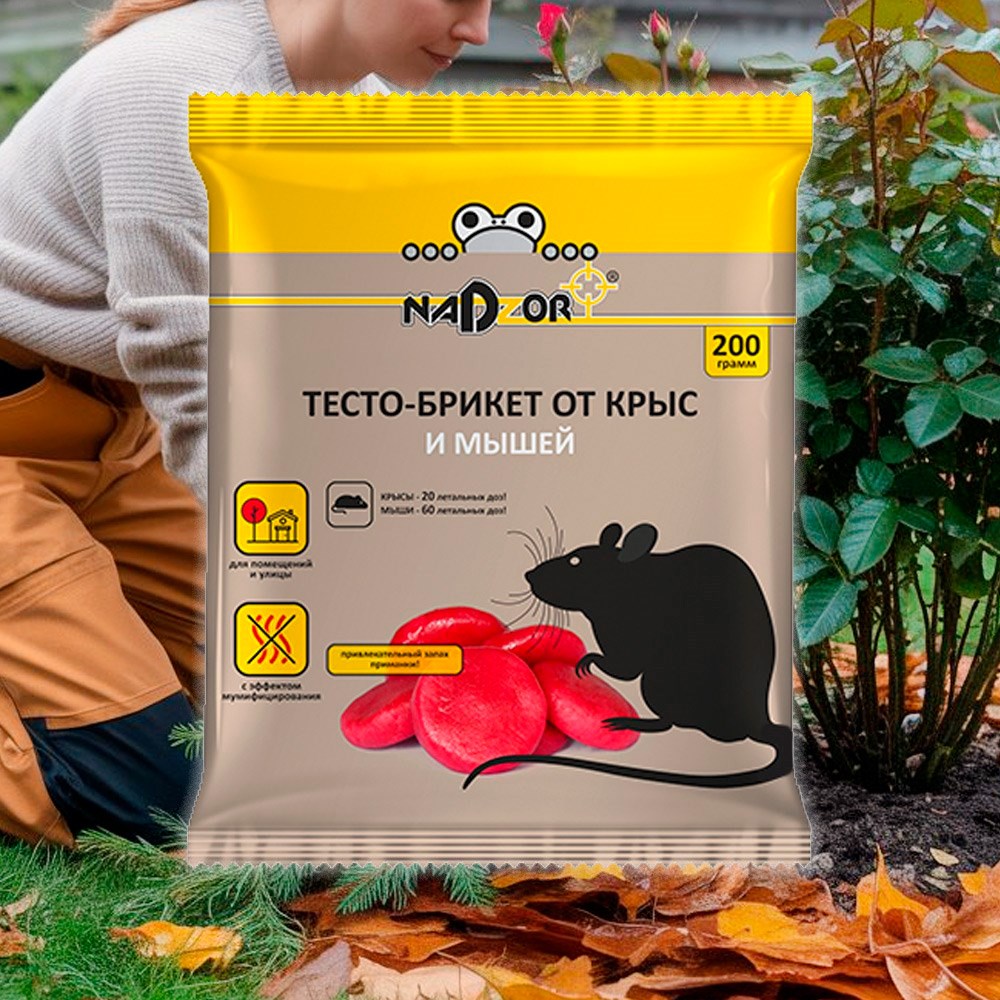 Тесто-брикеты имитируют растительную и животную пищу, чем и привлекают внимание крыс. Мягкая масса в виде теста упакована в индивидуальные пакетики из фильтр-бумаги, которые позволяют легко дозировать приманку и не соприкасаться с ней. Следуя на запах, грызун начинает поедать тесто-брикет, содержащий активное действующее вещество и комплекс привлекателей. Кусочки приманки, пропитанные бромадиолоном, раздражающе действуют на кожу грызуна и влияют на свертываемость крови. Отравляющий эффект проявляется через 3-7 дней. В течение этого периода яд медленно накапливается в организме грызунов. Действующими веществами являются бромадиолон (0,005%), красители, пищевая основа и битрекс (горький компонент). Бромадиолон — мощный родентицид из второго поколения, который обладает более высокой эффективностью и способностью накапливаться в печени отравленного животного. Обладает кожно-резорбтивным и антикоагулянтным действием.